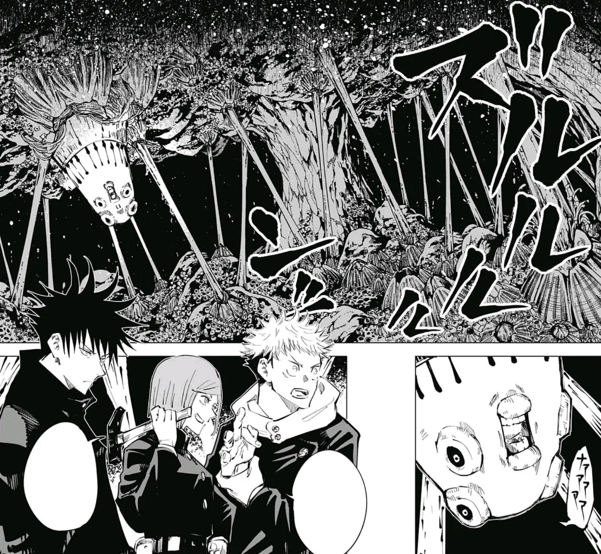 Posted by 4 months ago major Jujutsu kaisen manga spoilers theory about yuji itadori Manga Spoilers. Jujutsu Kaisen 呪 術 廻 戦 is a Japanese manga written by Gege Akutami. Before Megumi pushes himself too far Maki tells him its time for them to tag out of this battle.